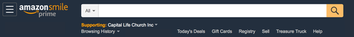 Support Capital Life Church with money you're already spending when you shop Amazon! You'll still be able to use your existing Amazon account with all of it's bells and whistles, but when you shop with AmazonSmile, Amazon will donate a portion of the purchase price to Capital Life Church. You only need to make your selection once, and Amazon will remember it the next time you log in. Just don't forget to always begin your shopping at https://smile.amazon.com.