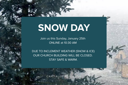 Due to the winter storm expected across Northern Virginia this weekend, Capital Life Church will move to an online-only service this Sunday to help keep our church family safe.